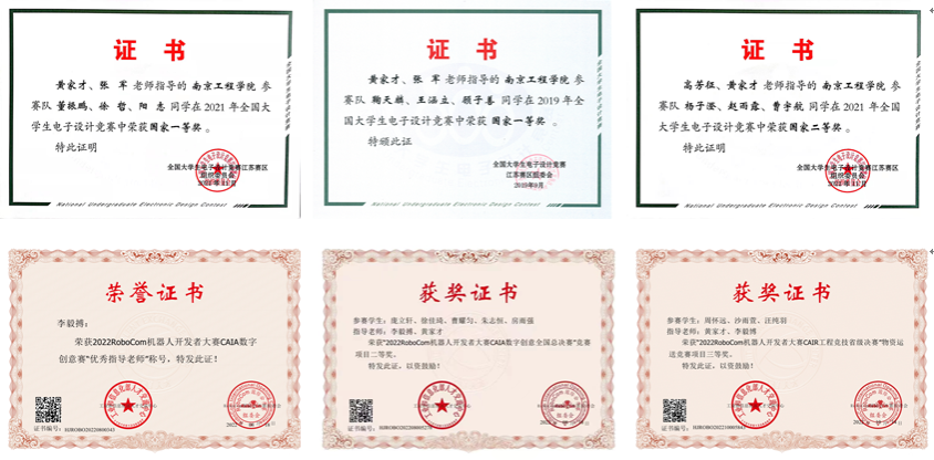 团队坚持以习近平新时代中国特色社会主义思想为指导,以立德树人为根本任务,注重师德师风建设,以做“四有教师”为自我要求,全力提升学生的综合应用能力、工程实践能力、创新创业能力和持续发展能力。获第二届江苏省“十佳研究生导师”提名奖1项、江苏省教学成果奖一等奖1项、凯发k8官网教学成果奖特等奖1项/一等奖1项、江苏省高等凯发教学管理研究会实践教学年会优秀论文1篇。团队平均每年指导本科生毕业设计60余人次、指导研究生10余人次、指导省大学生科创项目10余人次,获省高校优秀毕业设计(论文)二等奖、三等奖、团队奖多项。指导本科生参加“挑战杯”全国大学生课外学术科技作品竞赛、“互联网+”大学生创新创业大赛、全国大学生电子设计竞赛、RoboCom机器人开发者大赛等各项竞赛,获国家级奖项10余项、省级奖项50余项。