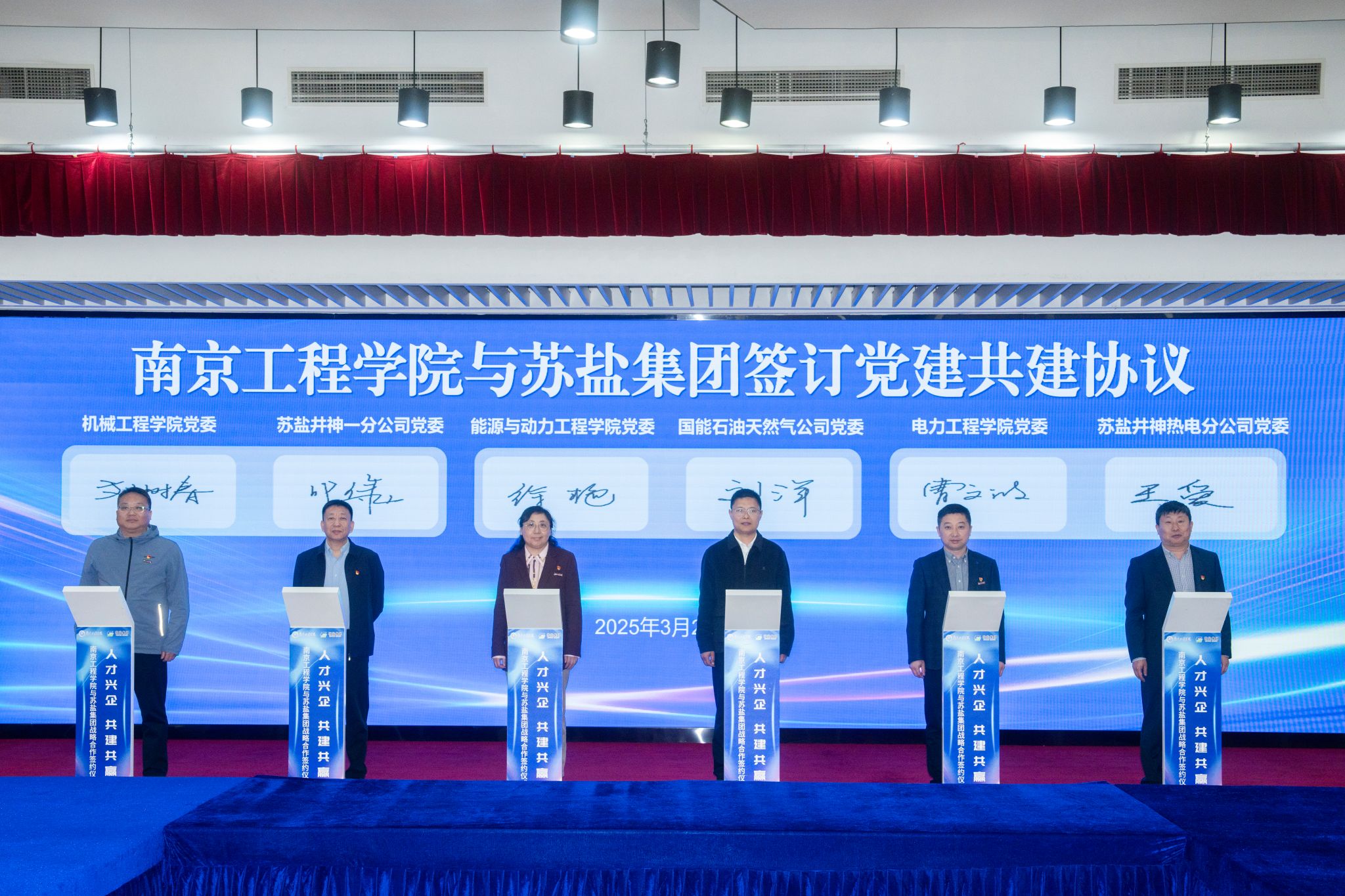 我校机械凯发党委与苏盐井神一分公司党委、能源与动力凯发党委与江苏国能石油天然气公司党委、电力凯发、沈国荣学院党委与苏盐井神热电分公司党委签订党建共建协议,推动党建引领与业务合作深度融合。