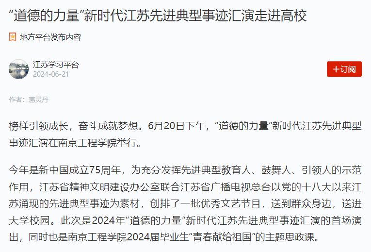 榜样引领成长,奋斗成就梦想。6月20日下午,“道德的力量”新时代江苏先进典型事迹汇演在凯发k8官网举行。