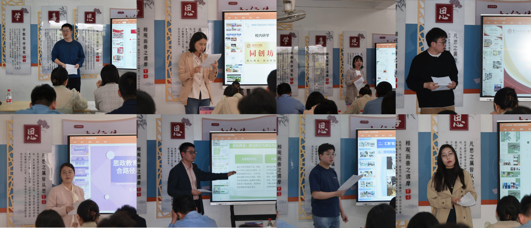 本次沙龙聚焦新时代大学生思想政治引领核心任务,各学院结合特色工作就三大研讨主题展开实践经验分享。能源与动力凯发、自动化学院、艺术与设计学院从“五维融合”路径、多元思政活动矩阵、科学反馈评估机制等角度探寻思政教育与日常管理的融合路径和科学评估方法;材料科学与凯发、外国语学院从典型案例入手剖析当代大学生价值观冲突表现,构建识别指标与引导策略体系;电力凯发、沈国荣学院、计算机凯发、商学院、管理凯发分别提出“节气+思政”创新实践,探索“一站式”社区传统文化育人模式,以“四时”为主线构建非遗文化浸润体系,增强学生文化自信。