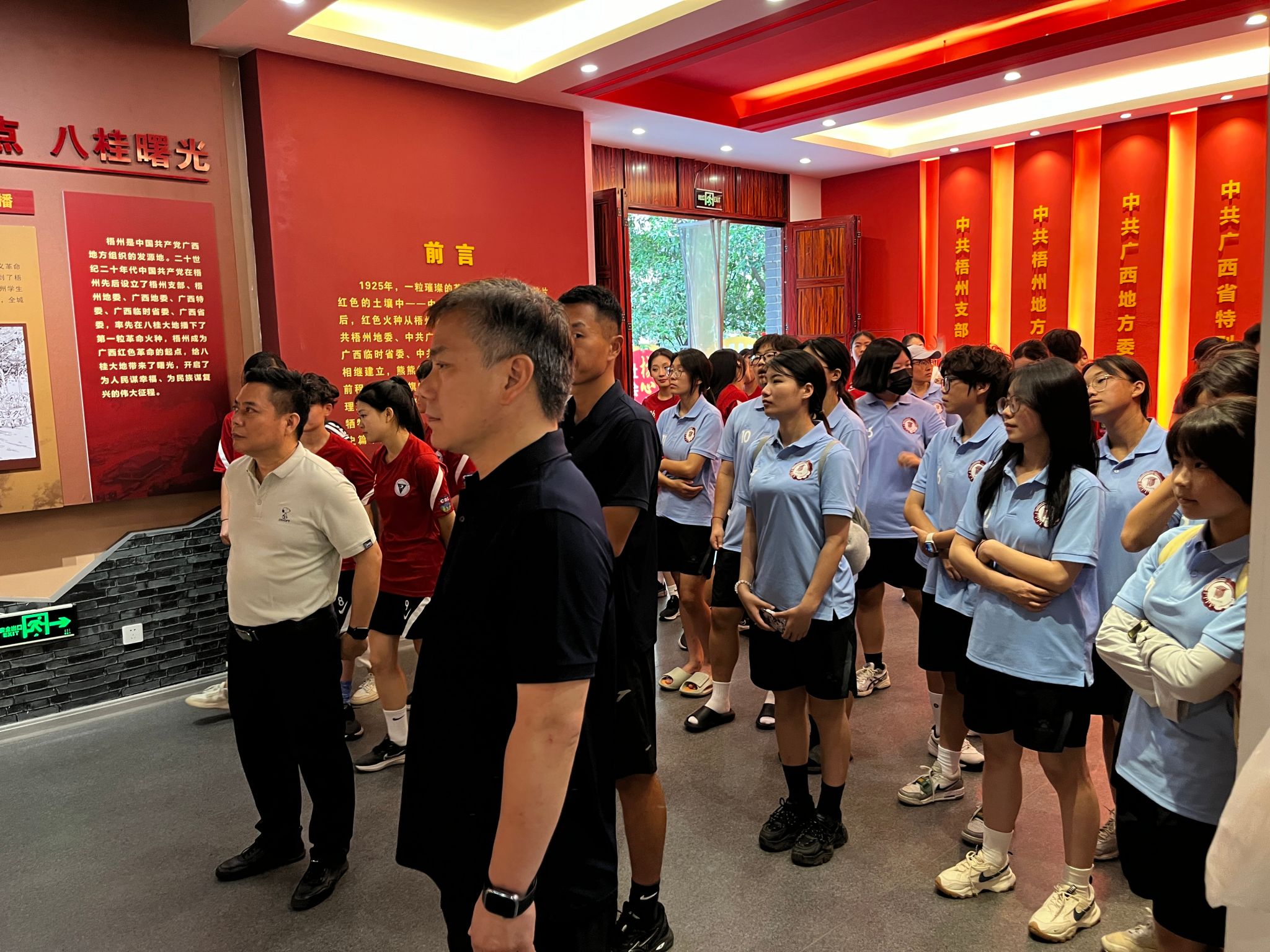 为激励广大党员和体育健儿赓续红色血脉,坚定理想信念、勇担时代使命,6月26日,体育部党总支书记赵伟带领教练员、党员运动员一行,前往广西梧州大同酒店旧址和中共梧州地委·广西特委旧址陈列馆开展红色教育活动。
